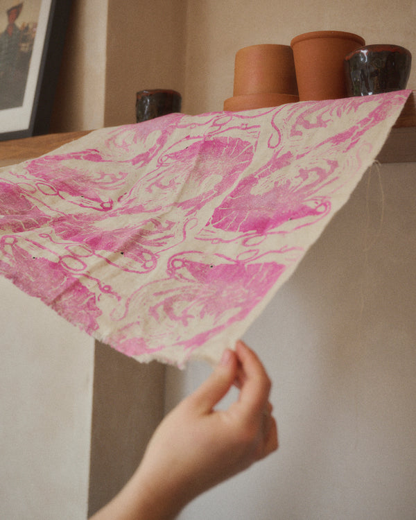 With the help of friends and a small network of remarkable printing studios across London and the UK, my hand block prints are carefully brought to life. What begins as ink on paper in my studio is translated through screen and digital printing before being sent to skilled seamstresses who transform the fabric into heirloom pieces for the home.