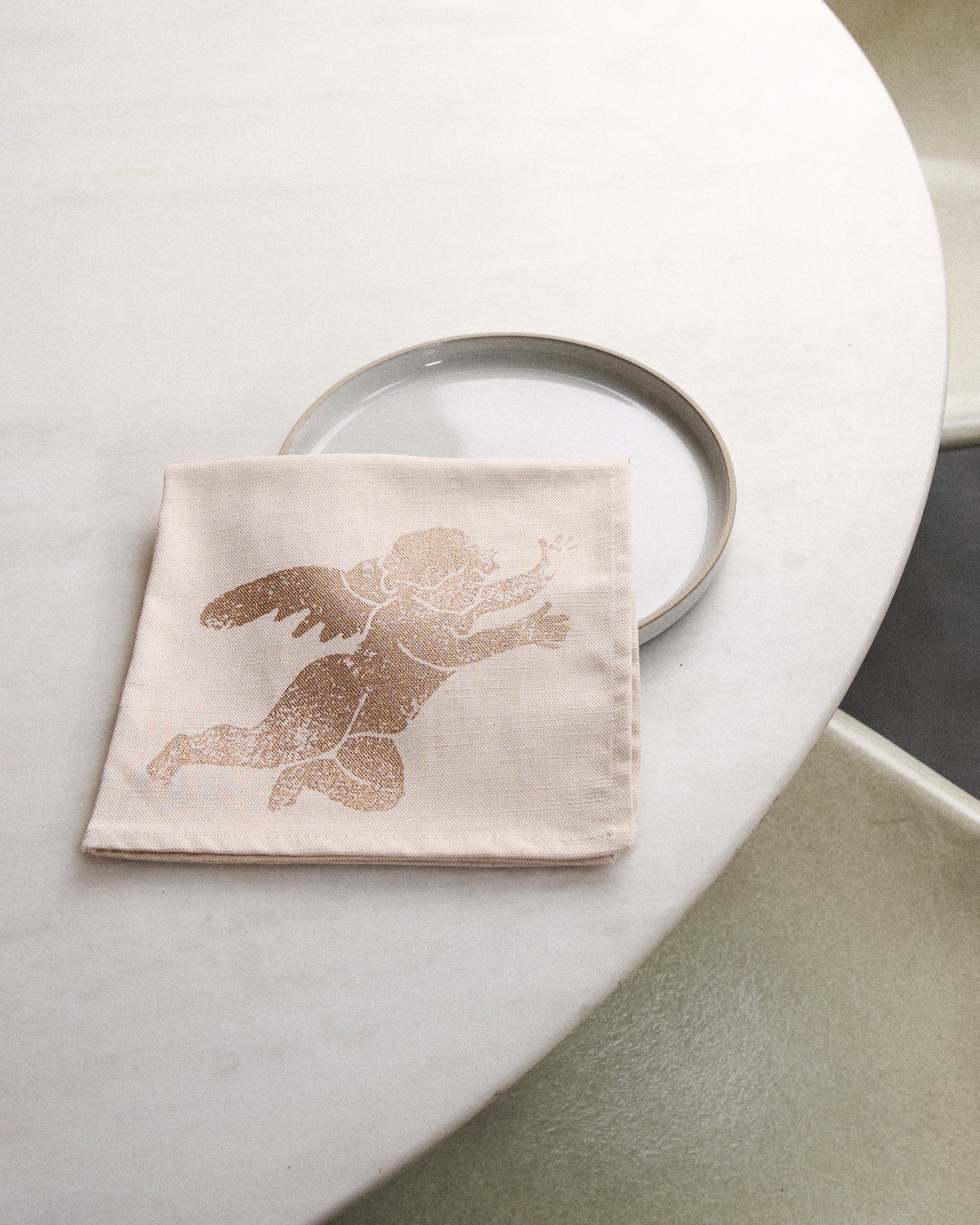 Screen-printed in London with shimmering gold paint, these napkins bring a touch of charm to the table. Featuring our signature cherub motif, they’re designed to add warmth and joy to every gathering.