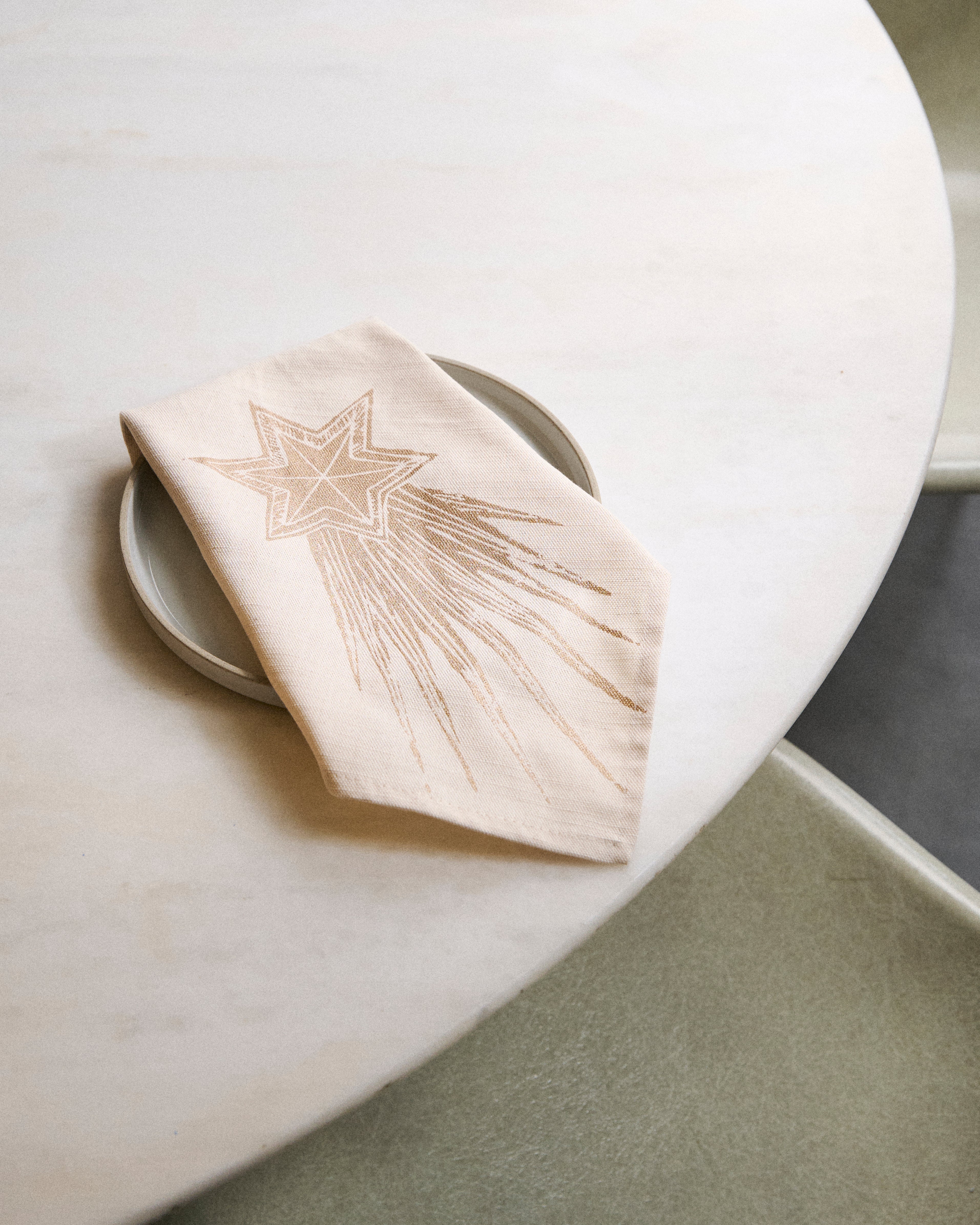 Napkins that brings a quiet elegance to the table. Screen printed in London with golden stars, they're made for candlelit feasts, the clink of glasses, and the joy of gathering together.