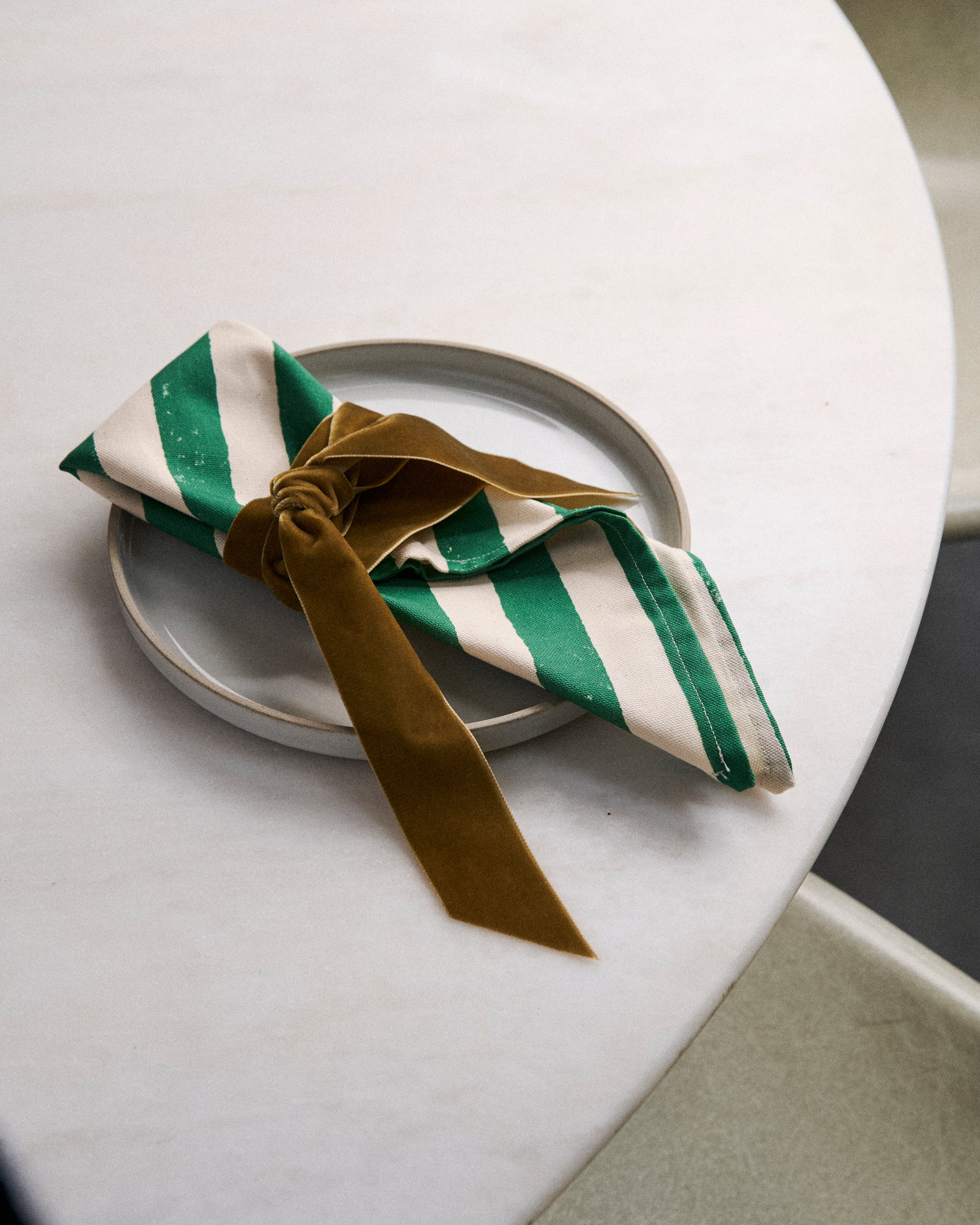 The Green Stripe napkins brings warmth and understated joy to the table. With deep green stripes on a beautiful organic cotton, it’s bold yet timeless, made for feasts, cosy breakfasts, and everything in between.